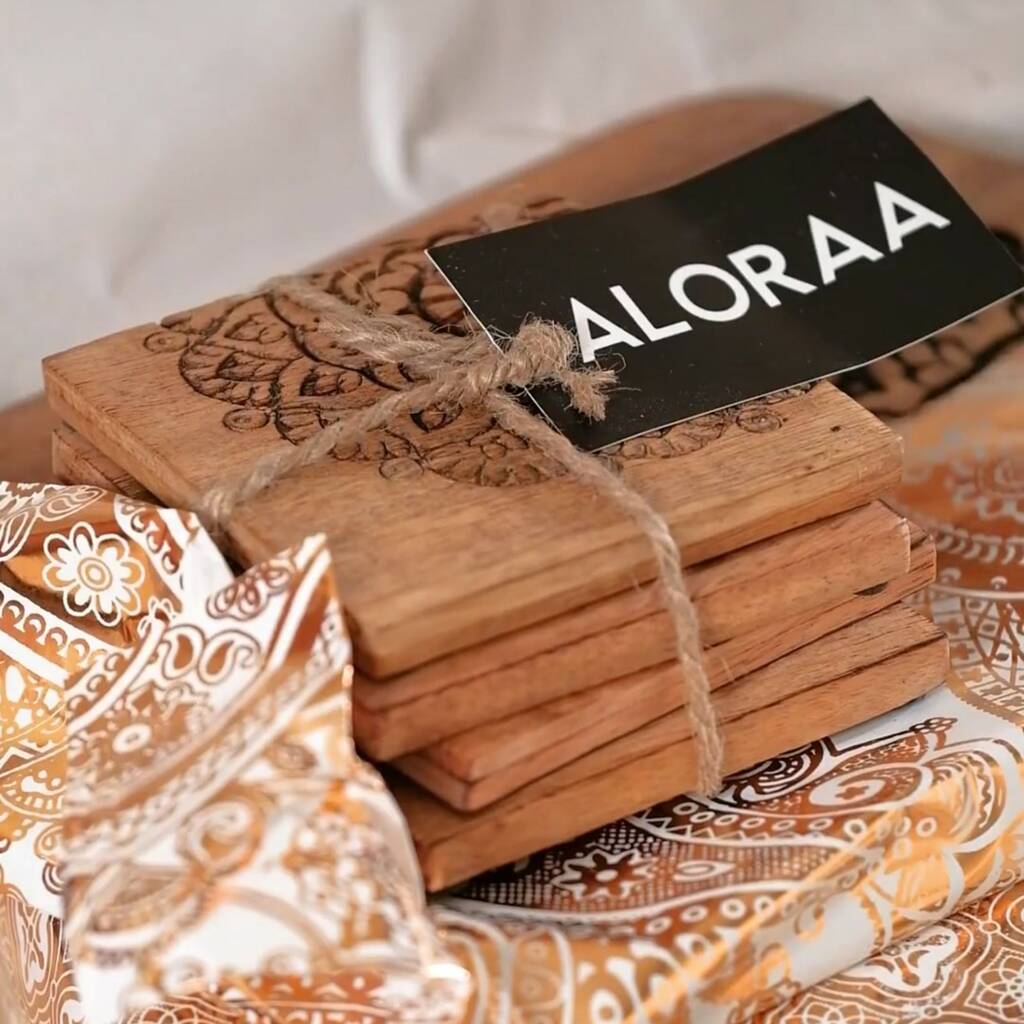 Hand Carved Mandala Coasters Set Of Four