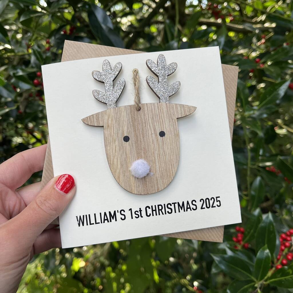 Baby's First Christmas 2025 Reindeer Decoration Card