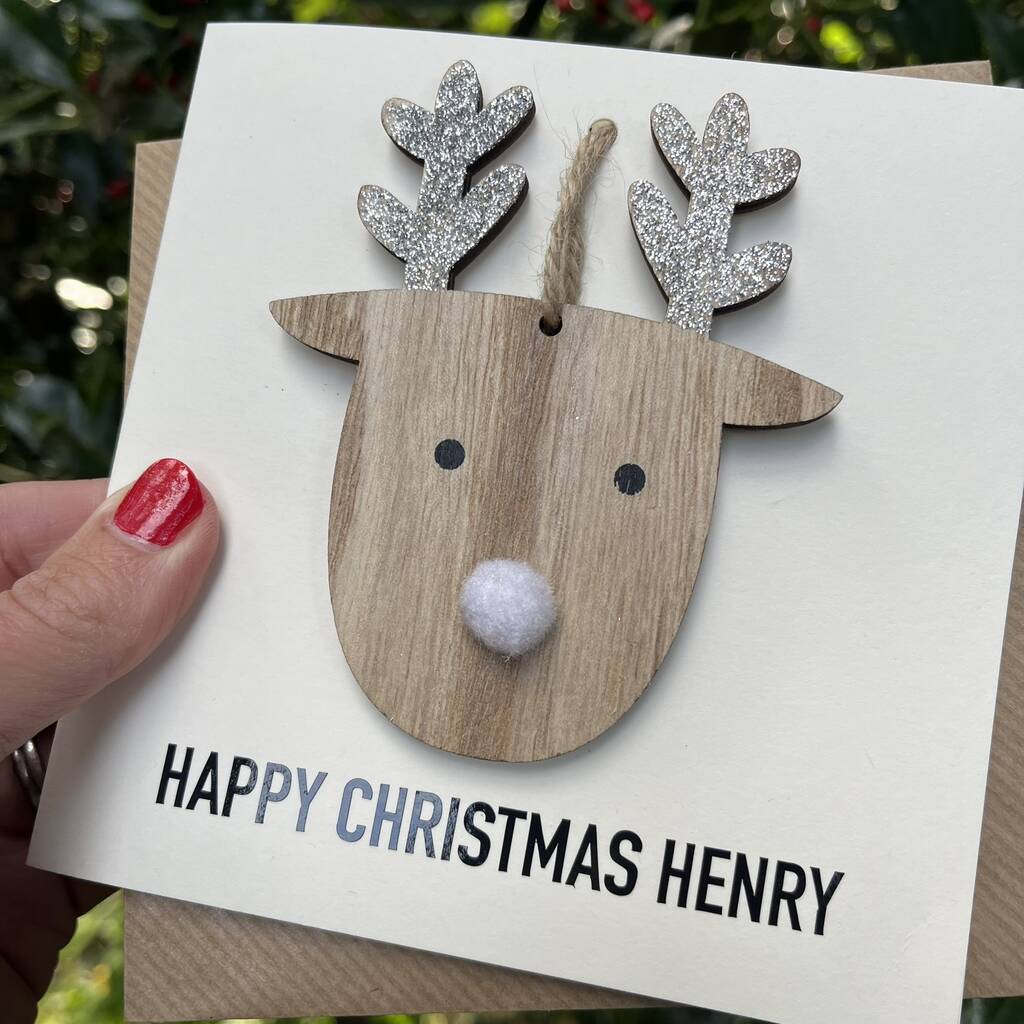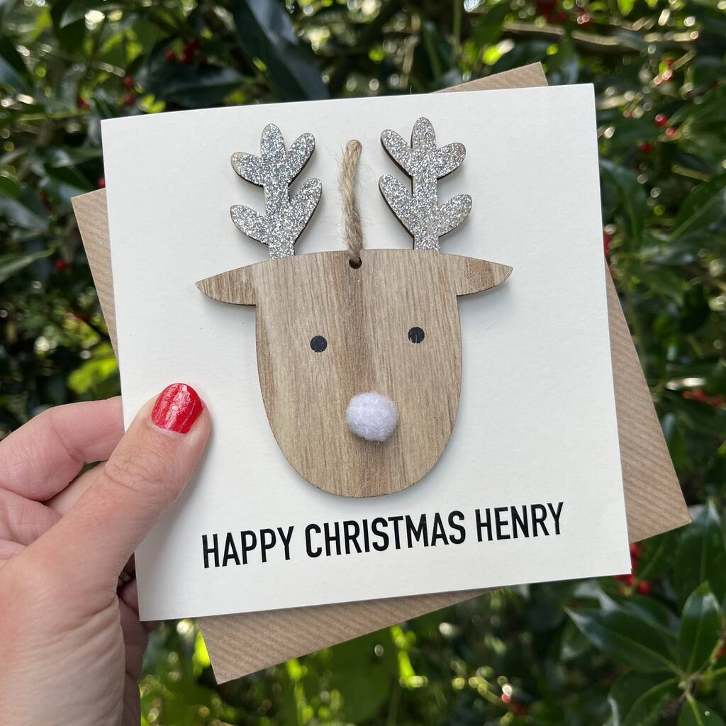 Personalised Hanging Reindeer Decoration Christmas Card