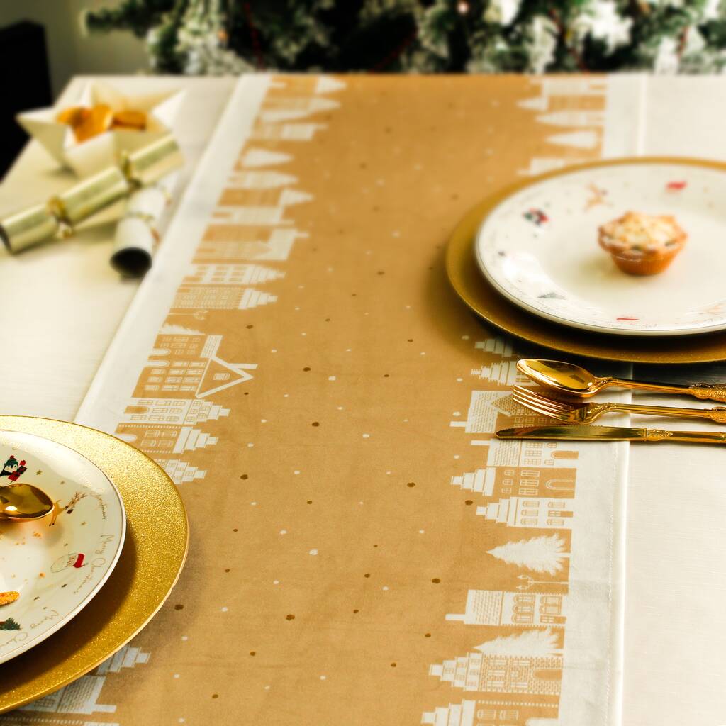Christmas Table Place Mats Gold Village Four Pack