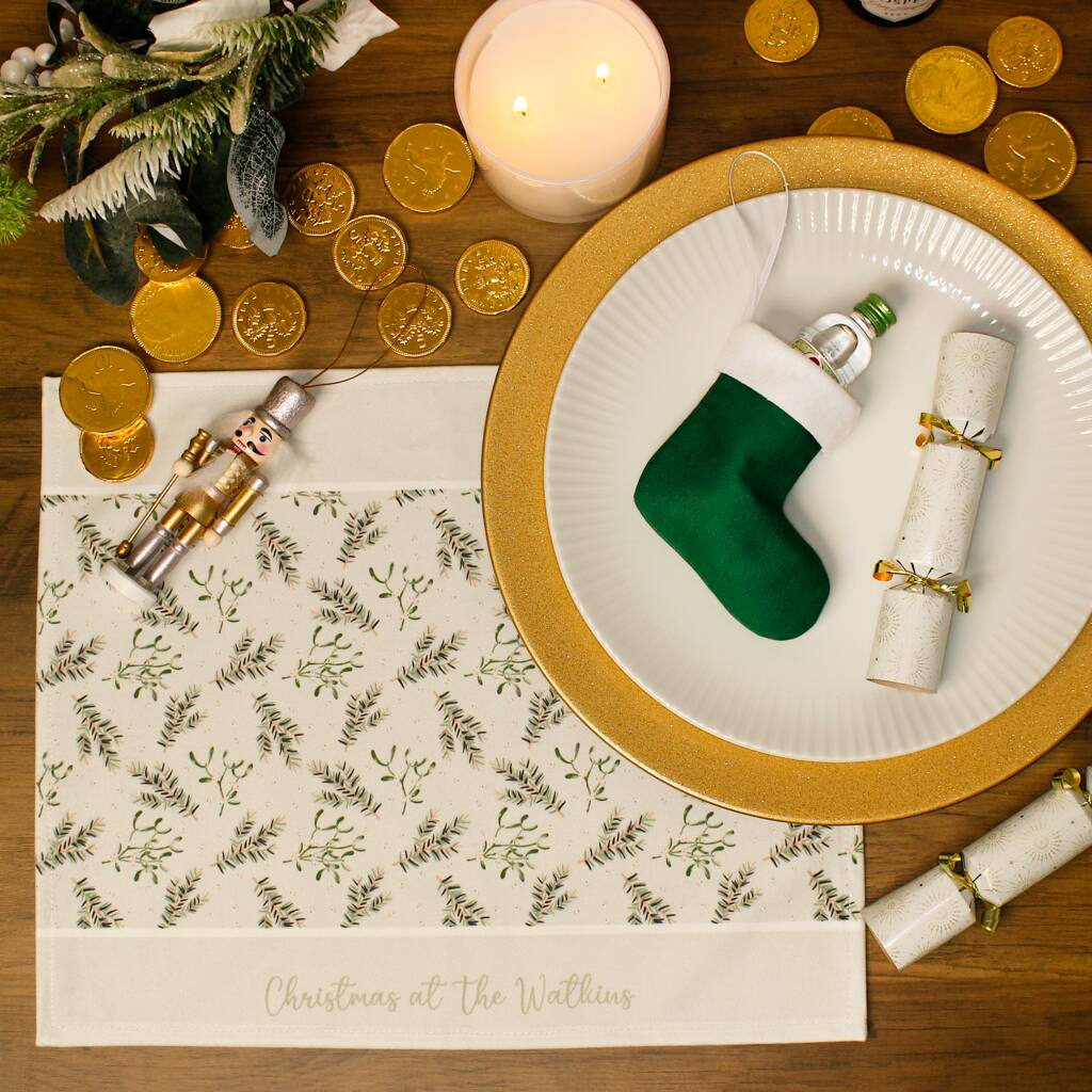 Christmas Table Place Mats Green Mistletoe Four Pack
