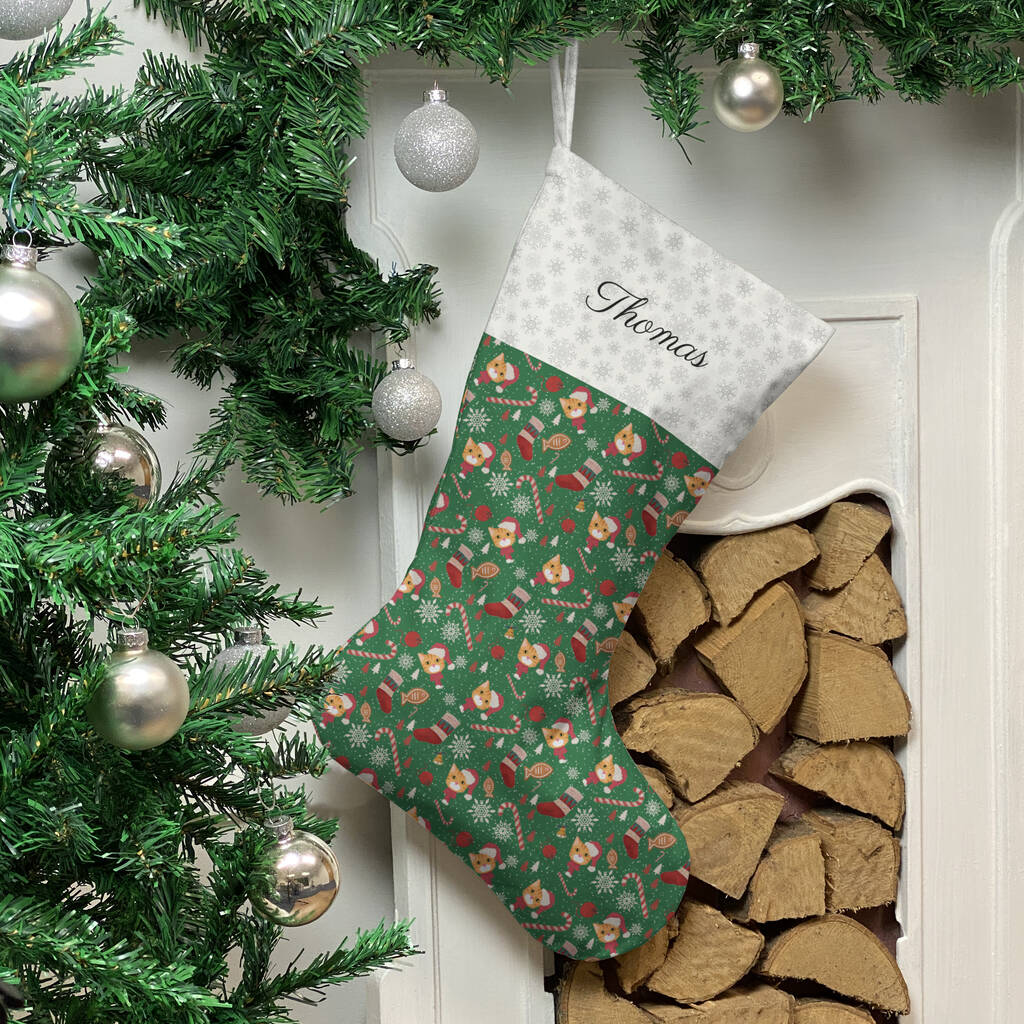 • Personalised Cats Christmas Stocking In Green, thumbnail 1 of 7