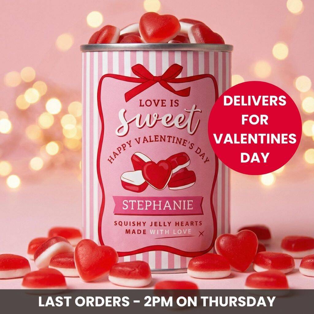 Personalised Jelly Hearts Retro Sweets Tin Valentine's Gift