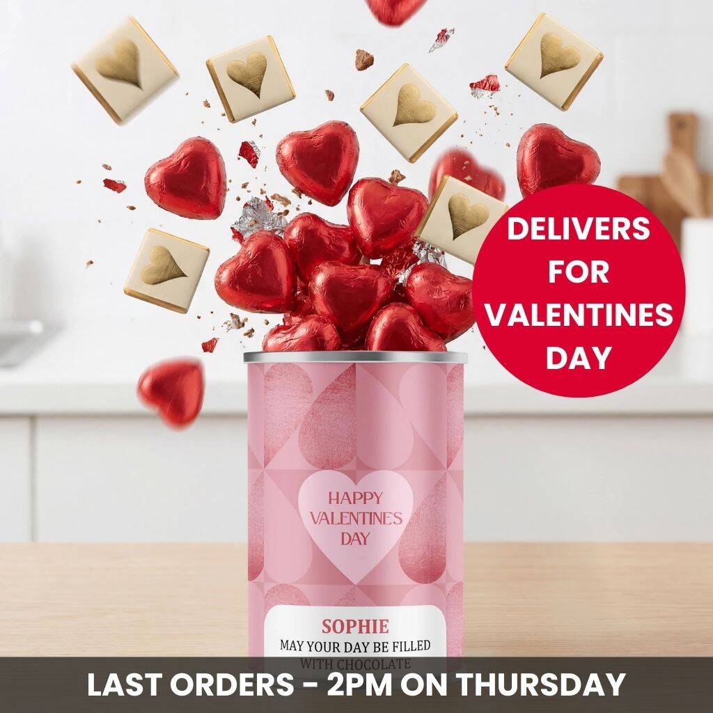 Personalised Valentine's Gift Gold Chocolate Hearts In A Tin