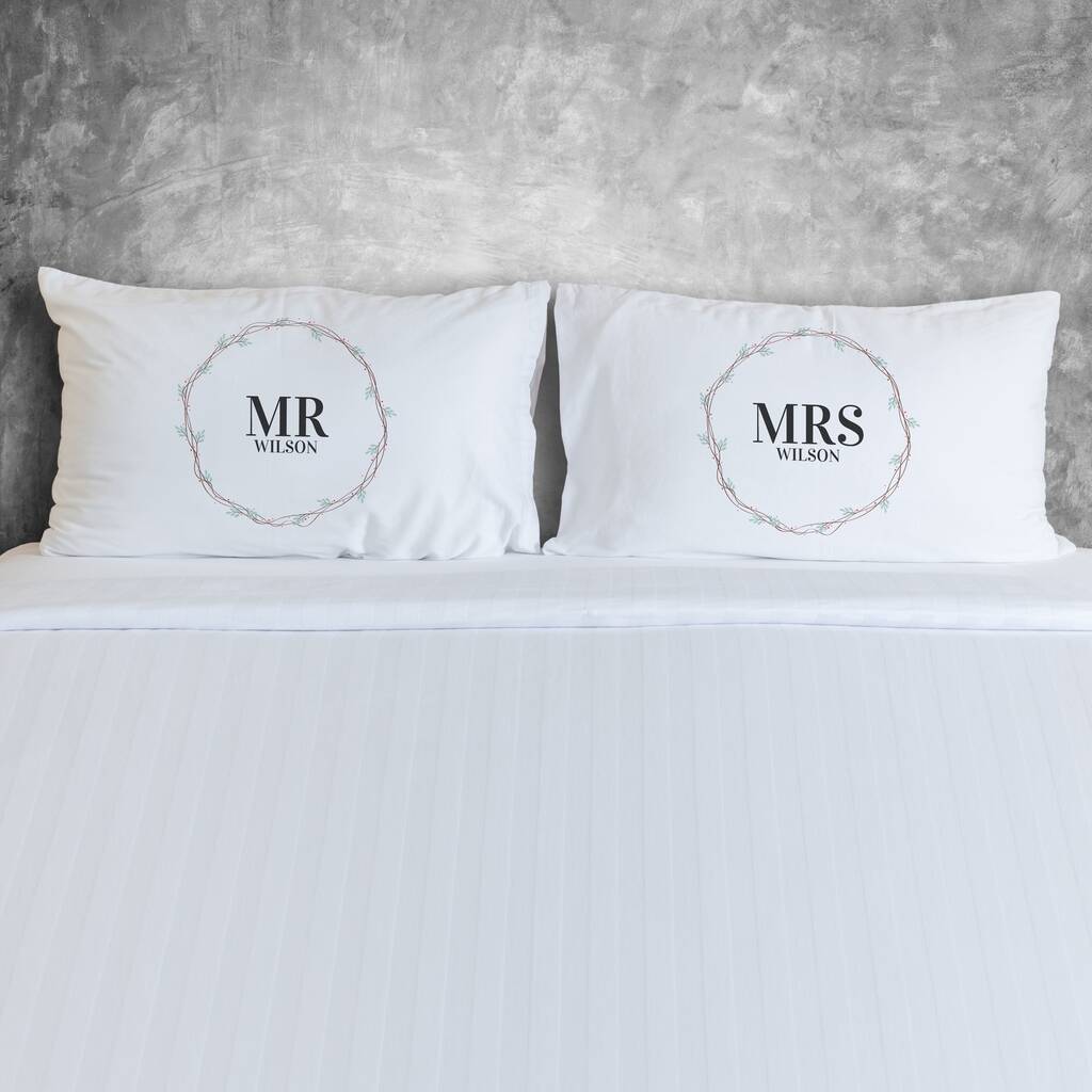 Personalised Wreath Pillowcase For Couples