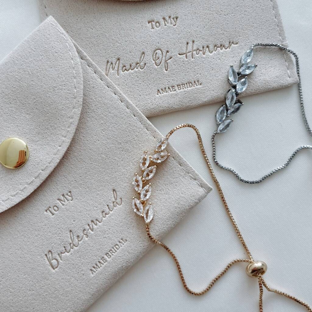 Bridesmaid Diamond Leaf Tennis Bracelet And Gift Pouch