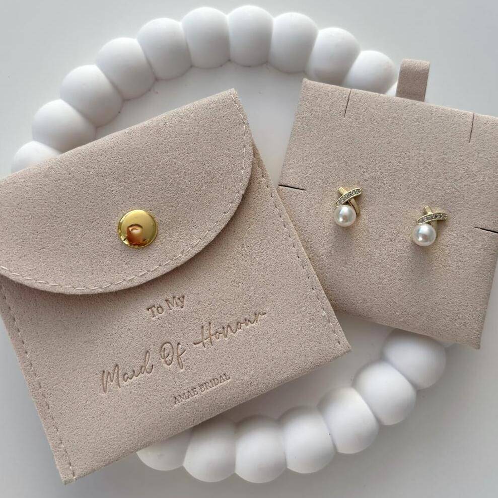 Bridesmaid Gold Pearl Cross Earrings And Pouch