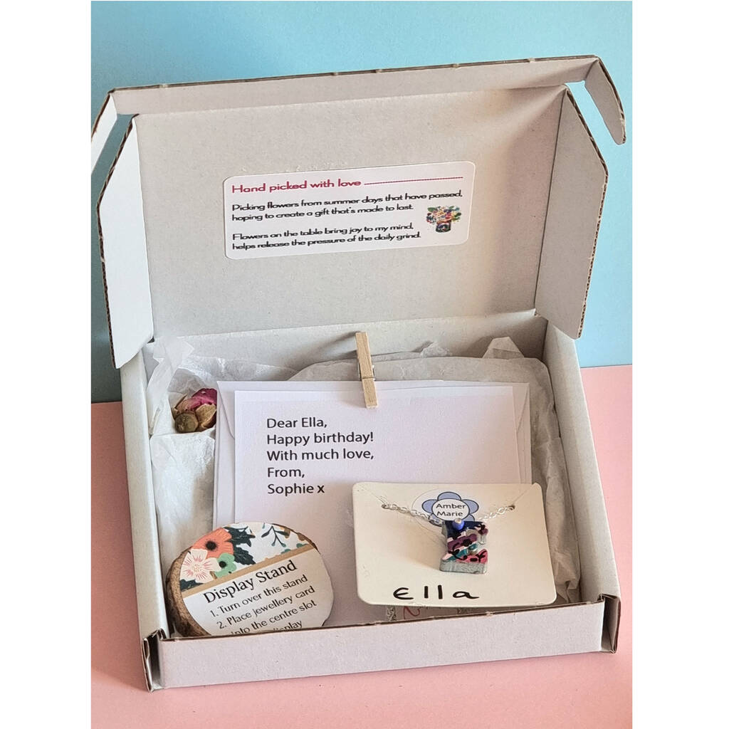 Custom Floral Wooden Letter Necklace Gift Choose Your Colour