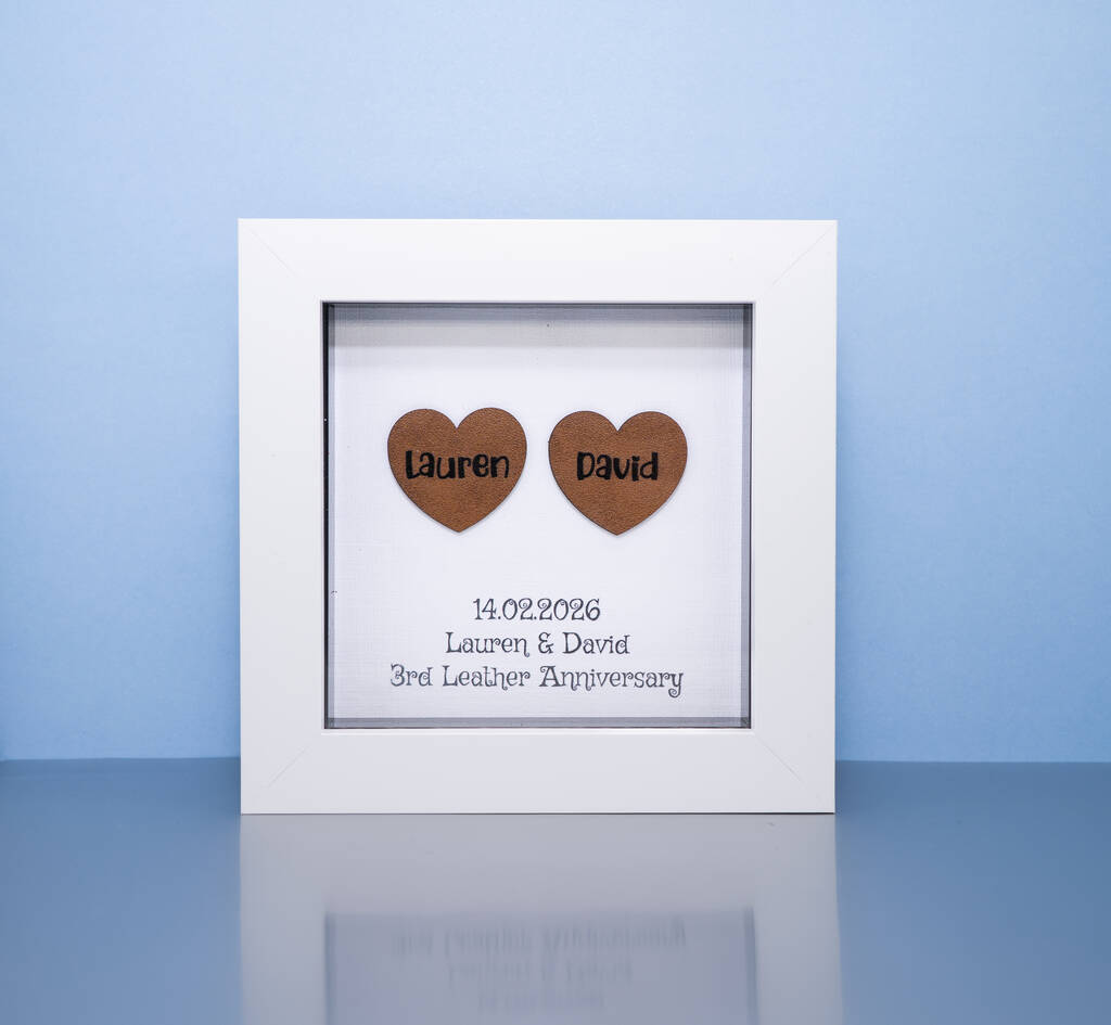 Personalised 3rd Leather Anniversary Frame Gift Engraved Names