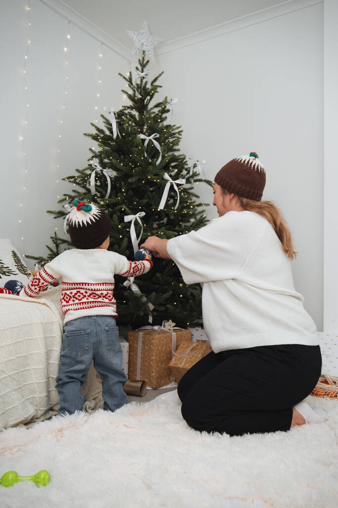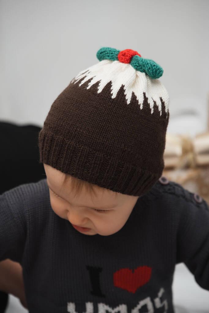 Knitted like a traditional Christmas pudding, with a little bubble cherry on top to add an extra sweet finishing touch to the outfit.