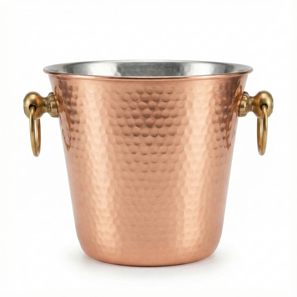 Elevate your entertaining with the Hammered Copper & Brass Ice Bucket — a sophisticated bar essential designed to impress. Handcrafted from pure copper with a food-safe tin lining
