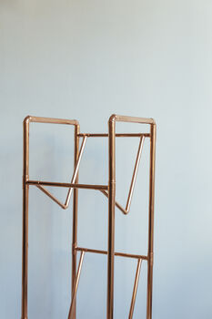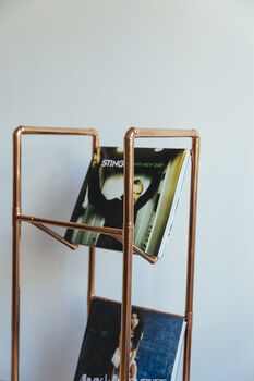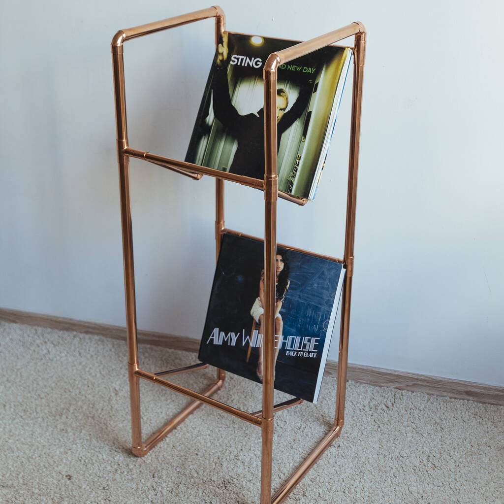 A sleek and stylish way to showcase your favourite vinyls—this handcrafted copper record stand brings industrial elegance to music storage.Designed for vinyl lovers with an eye for design, this Handmade Copper Standing Vinyl Record Rack is both functional and decorative. Crafted from solid copper piping with a minimalist open-frame construction, it holds your records upright and accessible—perfect for flipping through your favourites with ease.