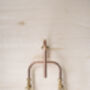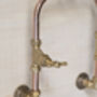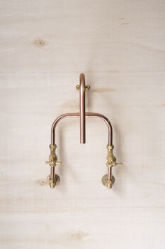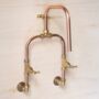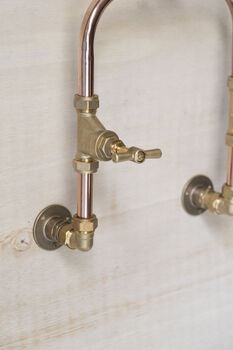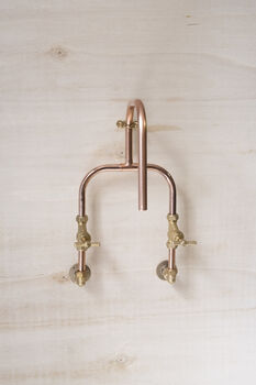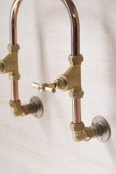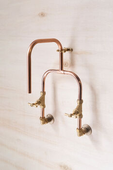 A striking fusion of raw materials and artisan craftsmanship—perfect for kitchens, bathrooms, or utility spaces with character.Bring an industrial edge to your interiors with this Wall-Mounted Copper Tap. Handcrafted from polished copper and solid brass components, this sculptural faucet offers both functionality and bold visual impact. Its exposed pipe design, vintage-inspired valve handles, and hand-soldered finish make it a standout piece in modern rustic or loft-style spaces.