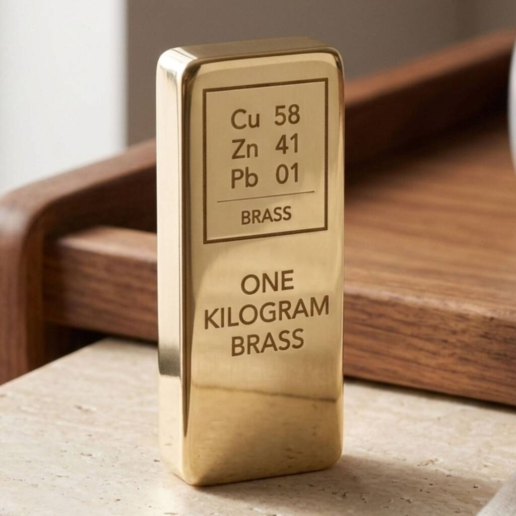 Crafted from high-quality solid brass, this One Kilogram Bullion Bar is a striking fusion of industrial strength and timeless elegance. Crafted from solid brass.