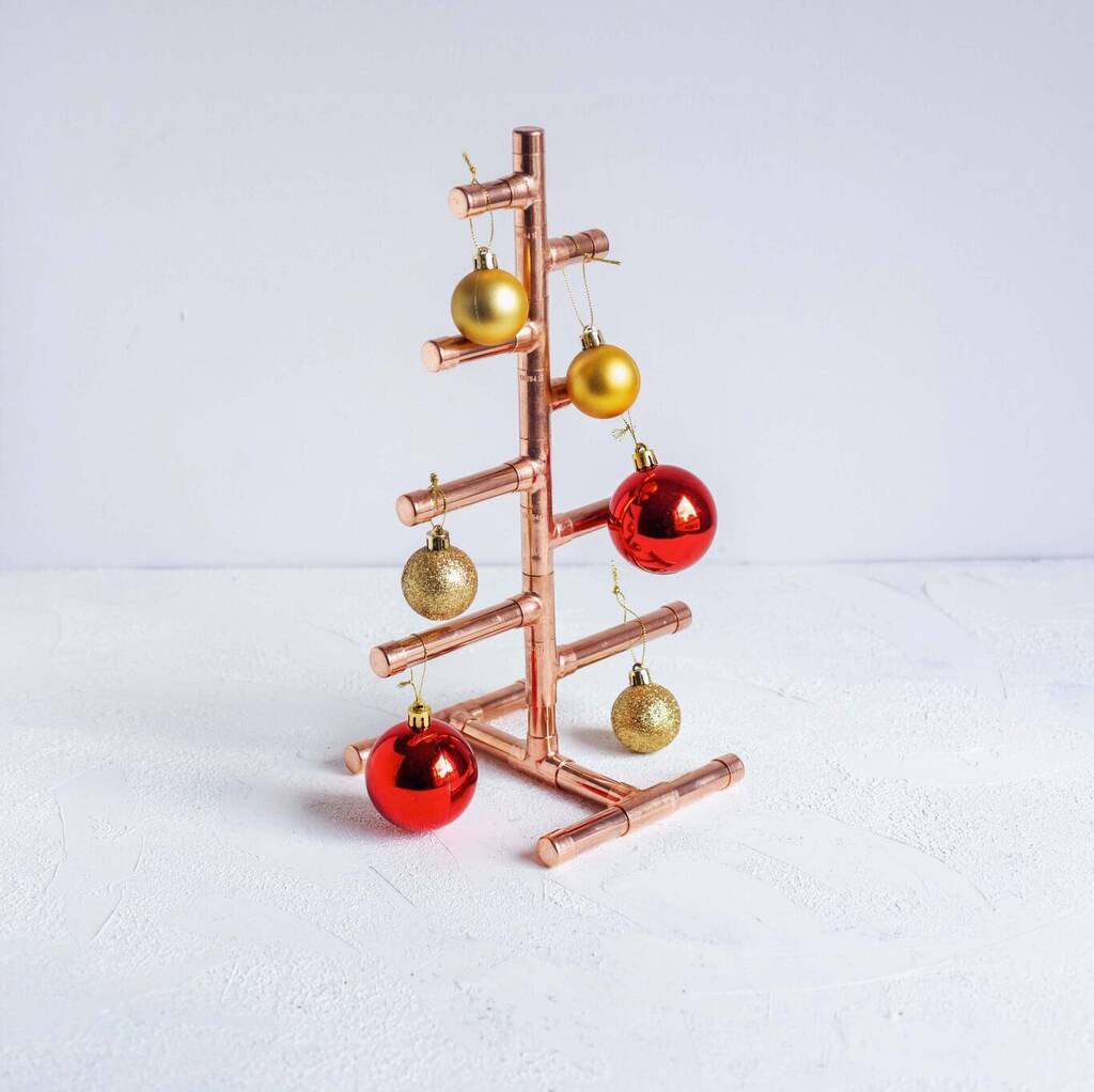 Solid Copper Pipe Christmas Tree, Copper New Year Xmas Decor 170 Mm X 300 Mm
