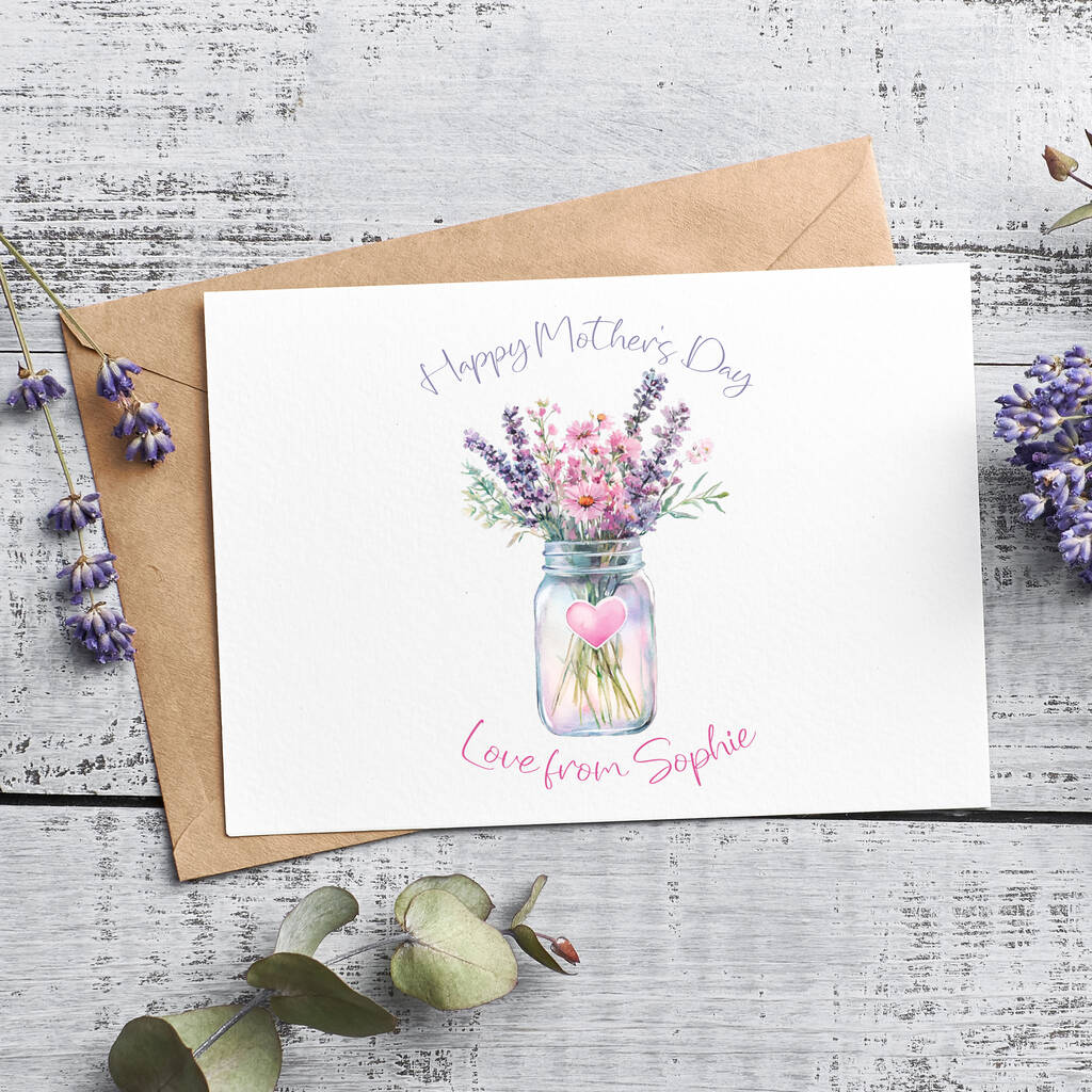 Pink Heart Pot Of Flowers Mother's Day Card