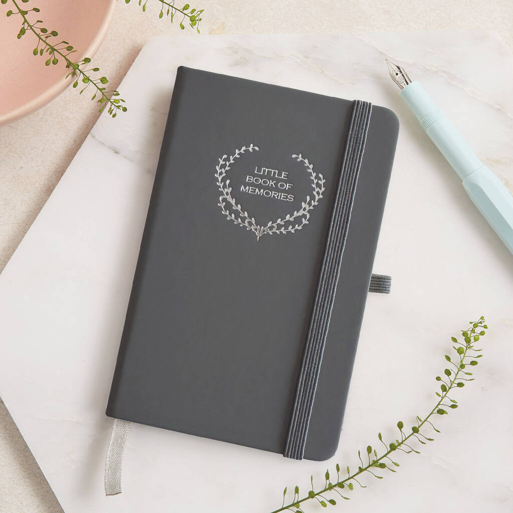'Little Book of Memories' Notebook - matt grey cover, lined ivory pages for journaling or jotting down special memories