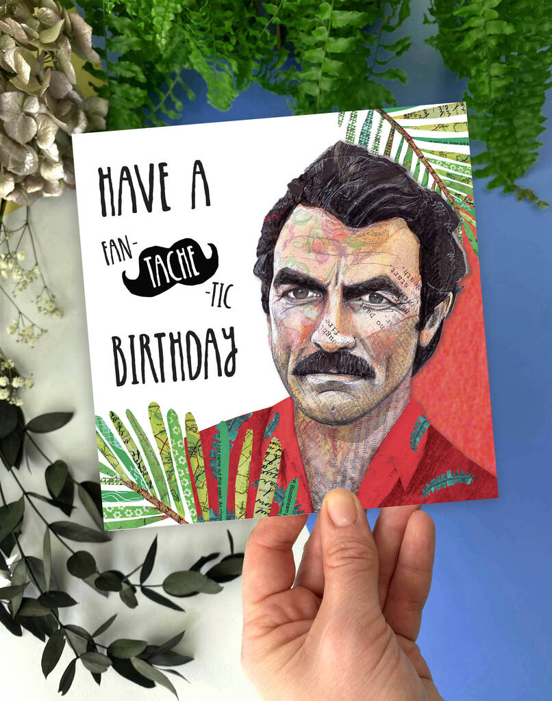 Tom Selleck Inspired Birthday Card – Fan‑Tache‑Tic Moustache Pun