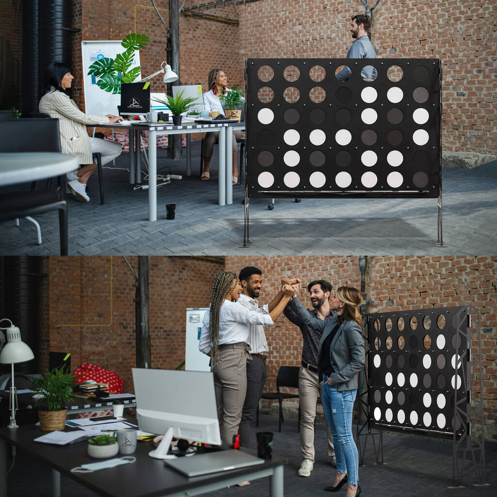 Archtwain Giant Size Four in a row is designed to stand firmly on the floor, allowing players to enjoy the game while standing.GIANT SIZE FOUR-IN-A-ROW
