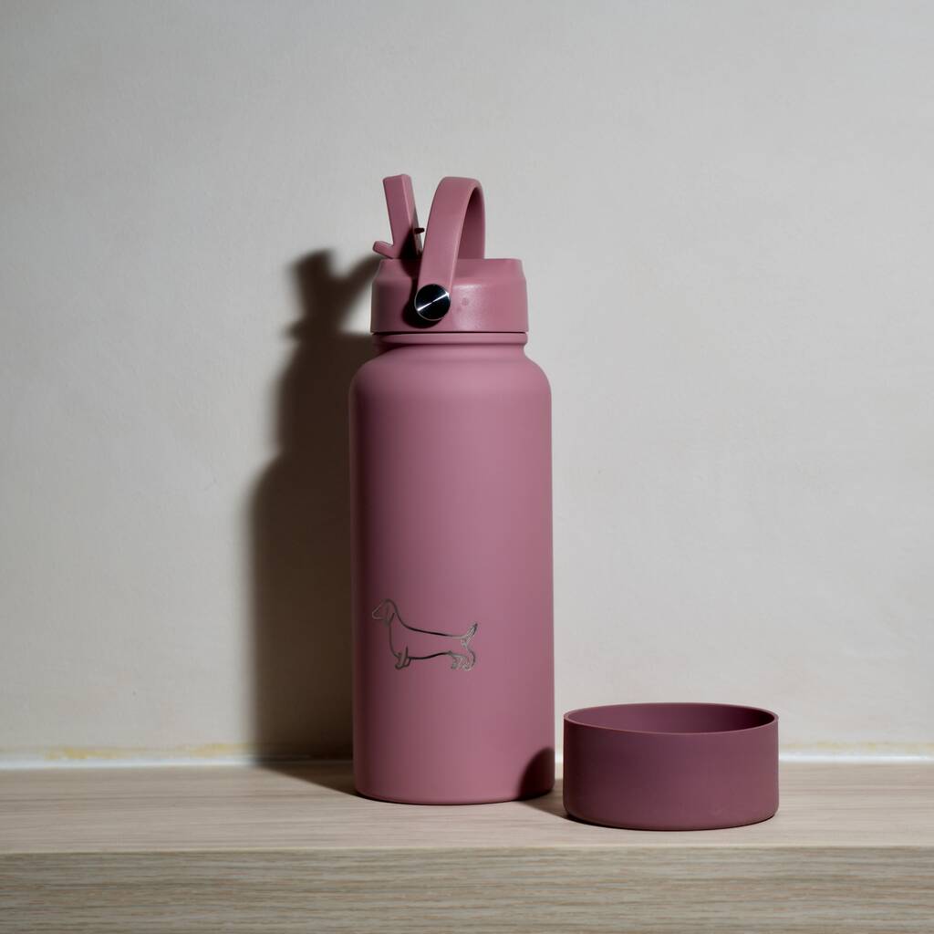 Dachshund 30oz Water Bottle With Removable Dog Bowl
