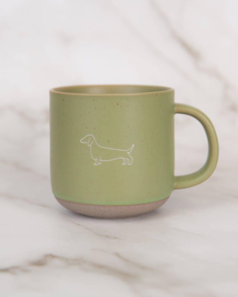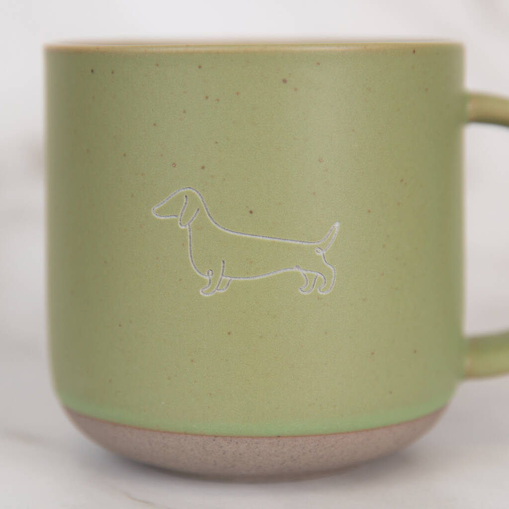Dachshund Engraved Green Ceramic Tea/ Coffee Mug