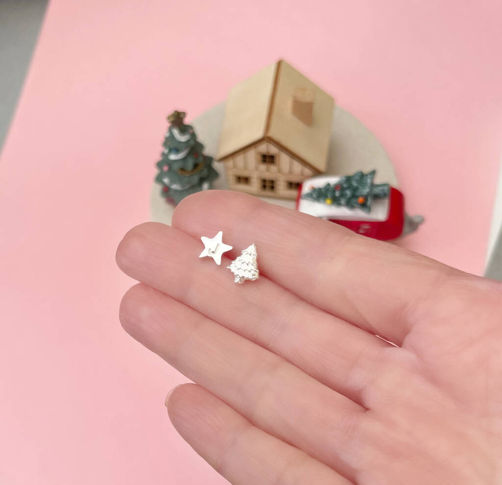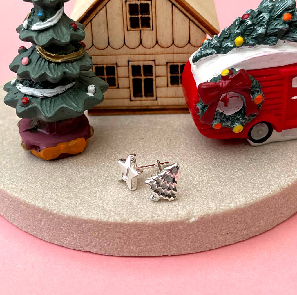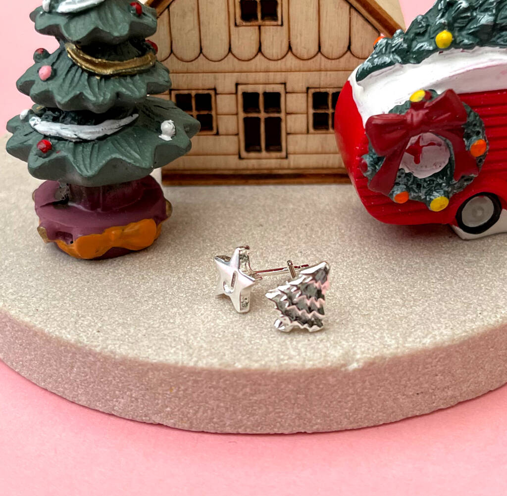 Personalised Sterling Silver Mismatched Christmas Tree Initial Star Earrings