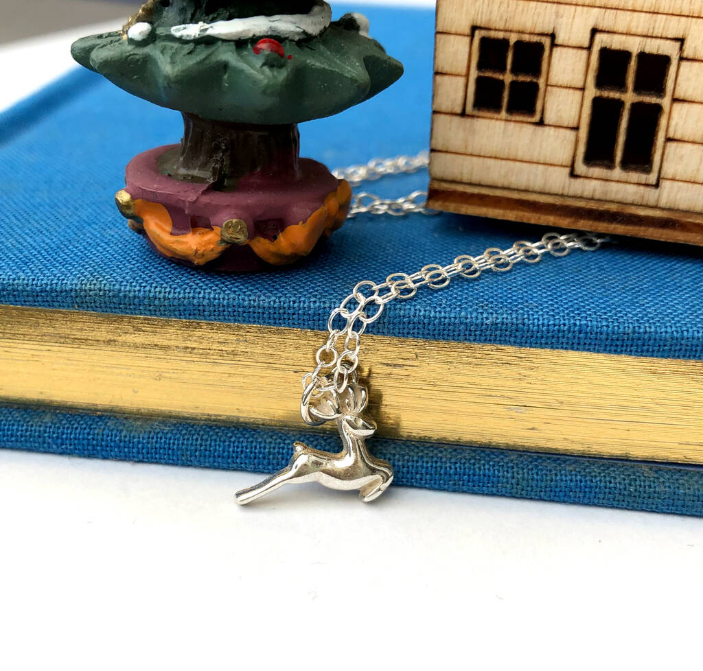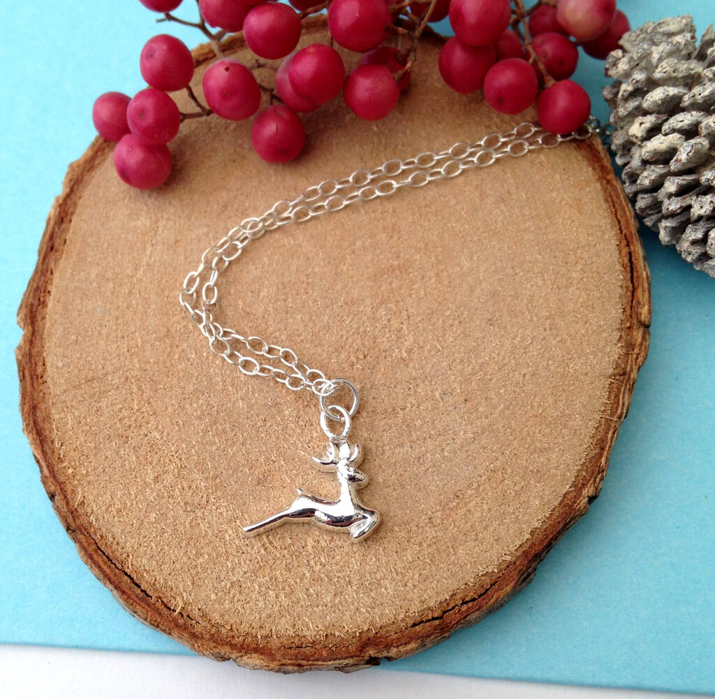 Personalised Sterling Silver Reindeer And Initial Star Christmas Necklace