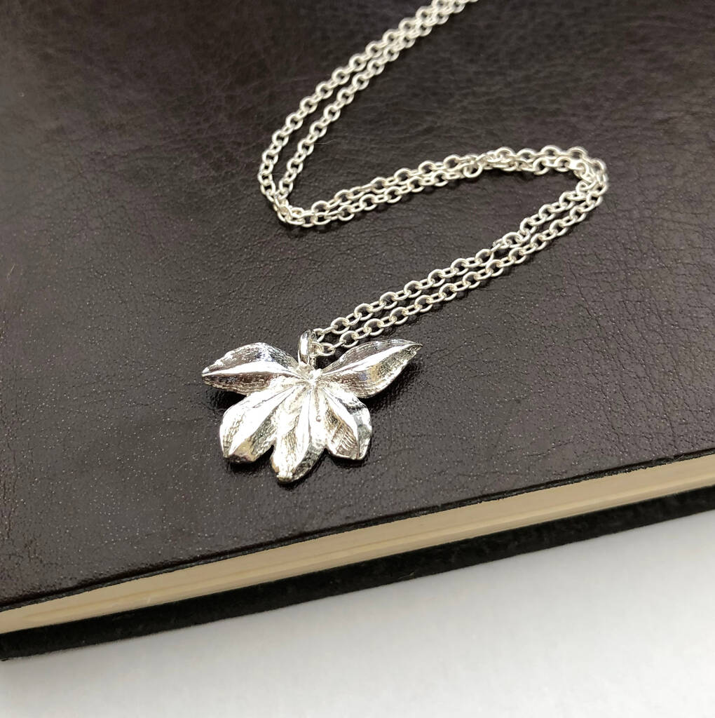 Bring a touch of nature’s quiet beauty to your jewellery collection with this Maple leaf necklace. Designed with simplicity and elegance in mind, the necklace captures the gentle charm of a falling autumn leaf. The finely shaped maple leaf pendant is handmade from sterling silver.