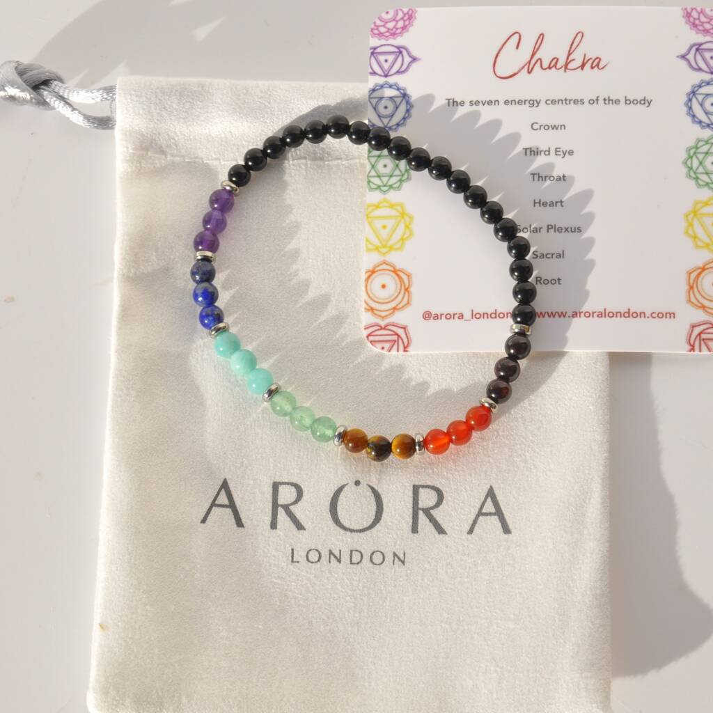 This dainty Chakra Bead and Black Tourmaline crystal bracelet signifies balance and unity, and makes a meaningful and thoughtful gift ideal for crystal lovers.