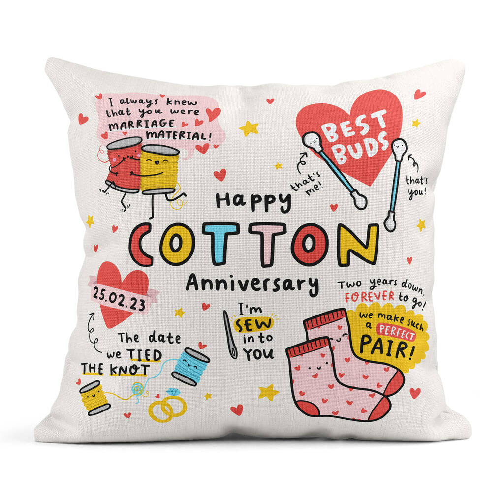 Personalised 2nd Anniversary Cushion 'Cotton Wedding Anniversary'