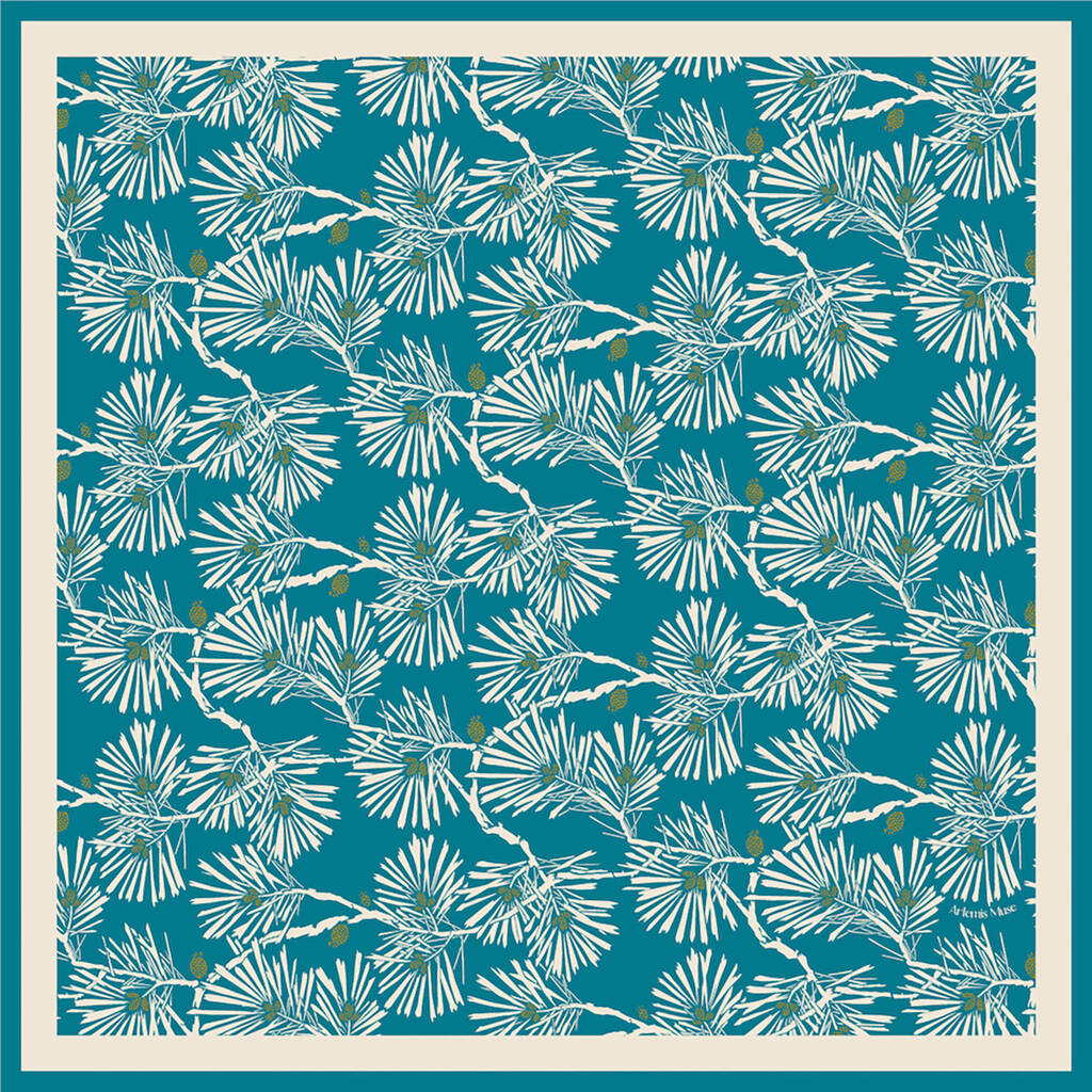 Japanese Vintage Pine Needles Teal And Ivory Silk Scarf