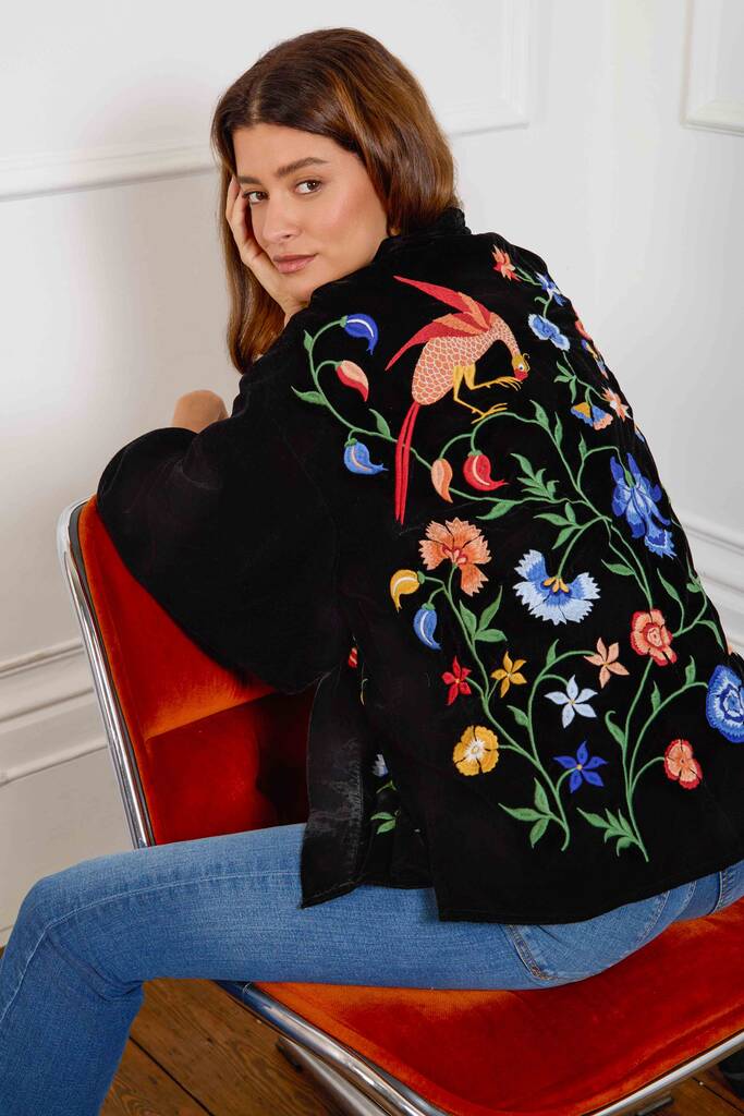 Regal Floral And Bird Embroidery Velvet Luxury Kimono
