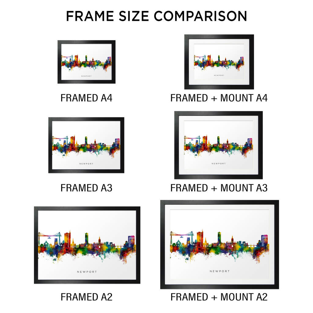 Frames are available for print sizes A4, A2, A3 and 50x70cm. The final size, including the frame, are +2.2cm each side for frames without a mount, +4.5cm each side for frames with a mount.