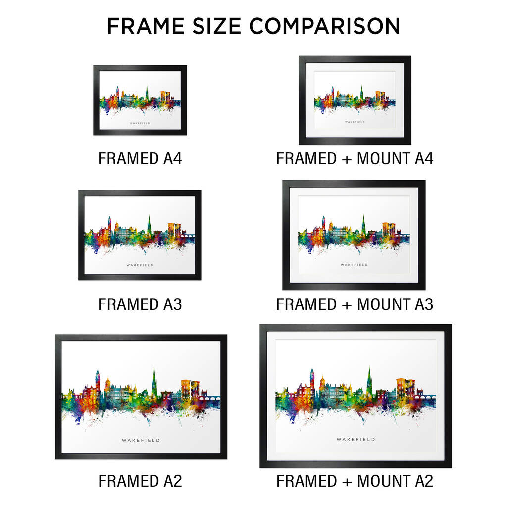 Frames are available for print sizes A4, A2, A3 and 50x70cm. The final size, including the frame, are +2.2cm each side for frames without a mount, +4.5cm each side for frames with a mount.