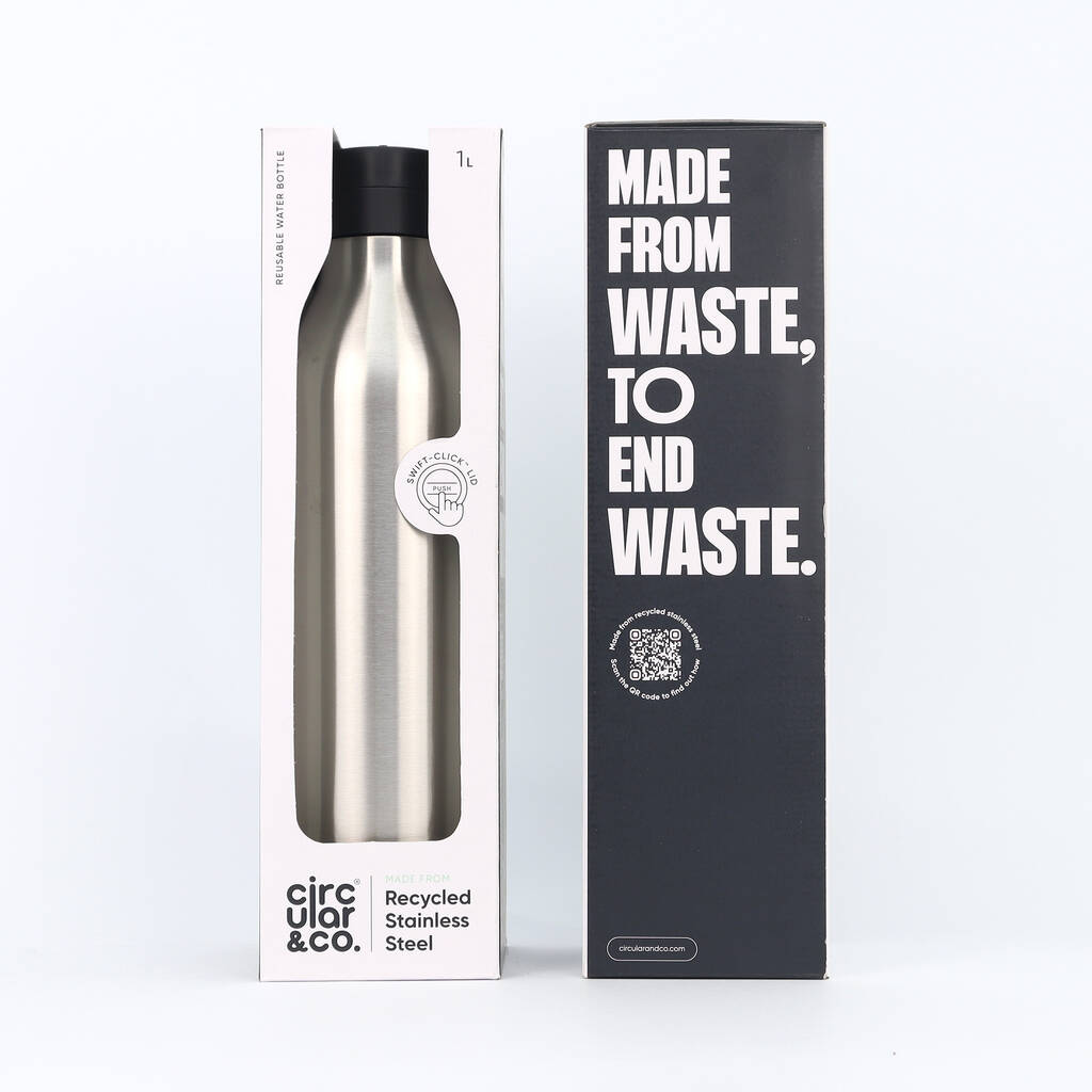 Circular And Co One L Stainless Steel Water Bottle Uncoated Black