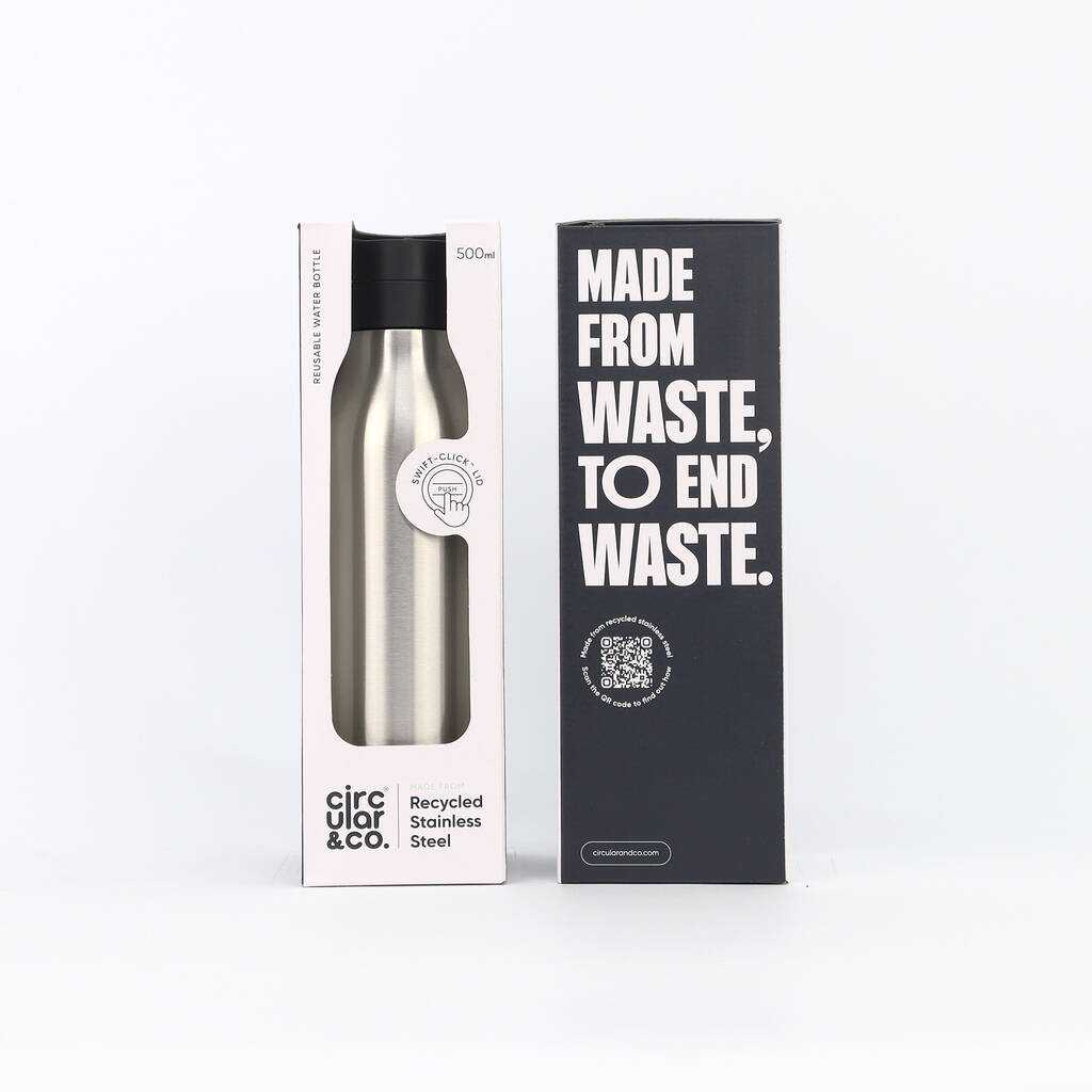 Circular And Co 500ml Stainless Steel Water Bottle Uncoated Black