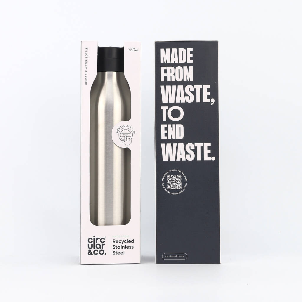 Circular And Co 750ml Stainless Steel Water Bottle Uncoated Black