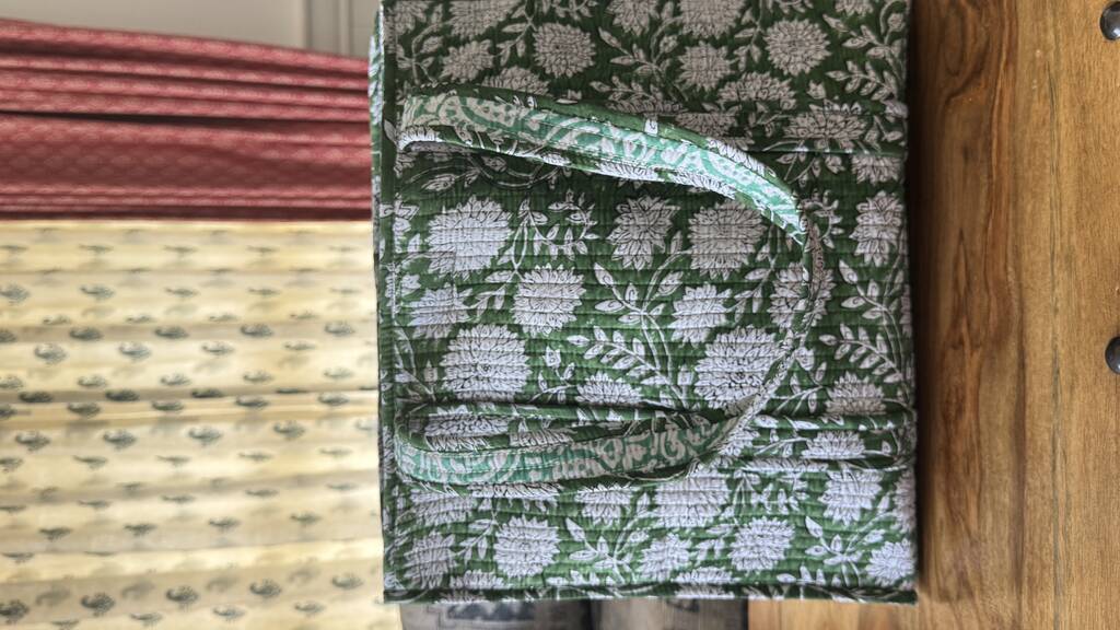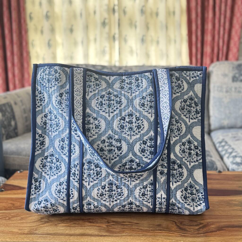 Block Print Quilted Tote Bag, Indian Print Handbag