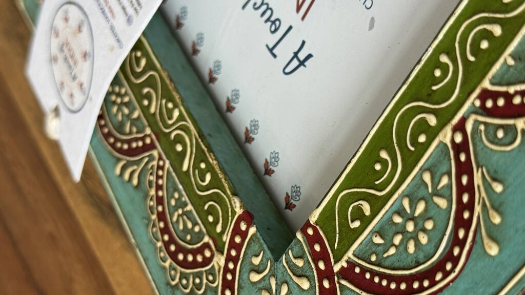 Indian Wood Picture Frame, Hand Painted Photo Frame