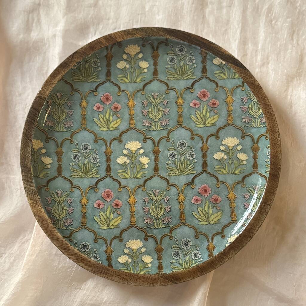 Mango Wood Round Serving Platter Tray, Chip And Dip