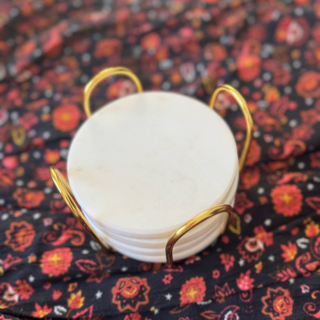Pristine White Marble Set Of Four Coasters With Case
