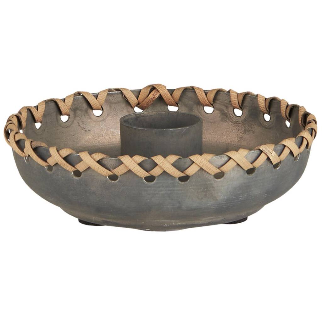 Distressed Metal And Rattan Candle Holder And Candle Set