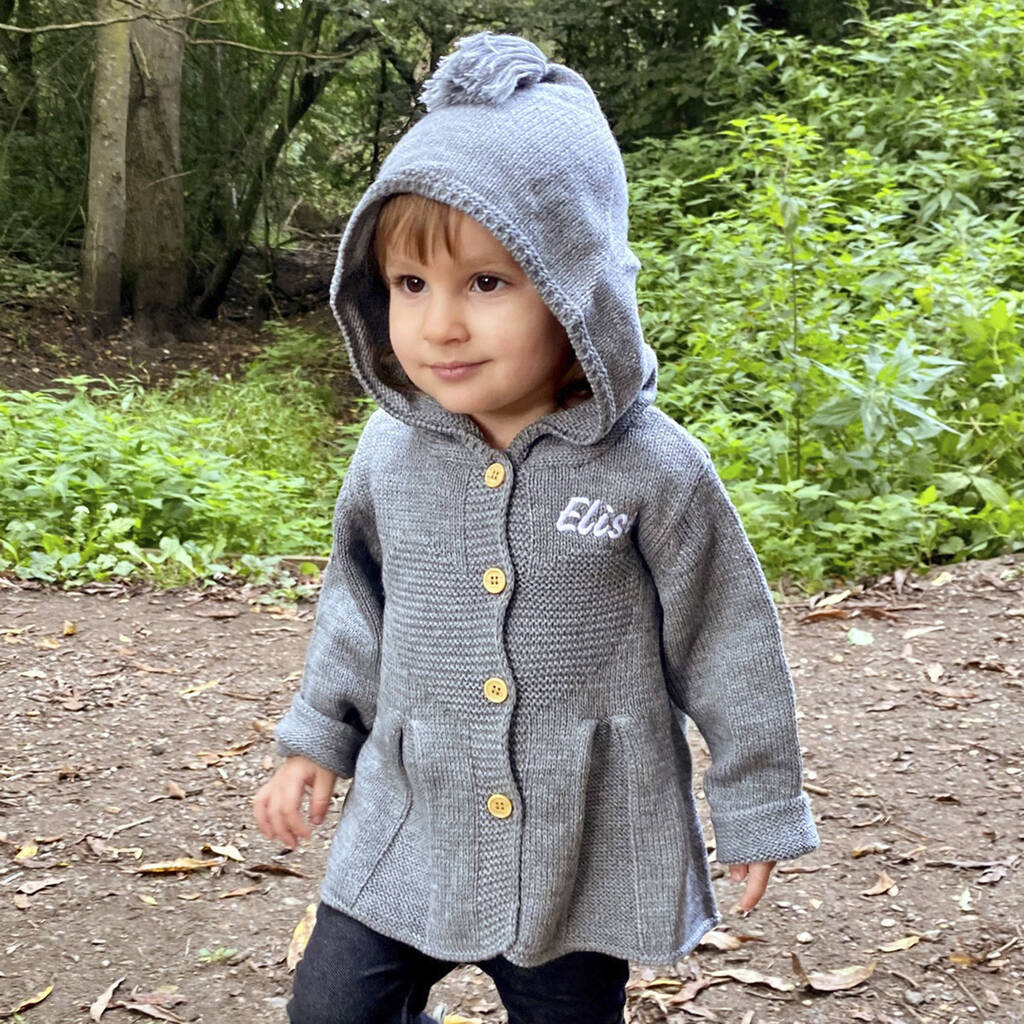 Personalised Grey Knitted Flare Hooded Cardigan