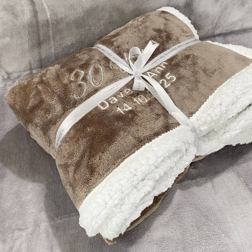 Personalised Pearl Wedding Anniversary Mocha Blanket