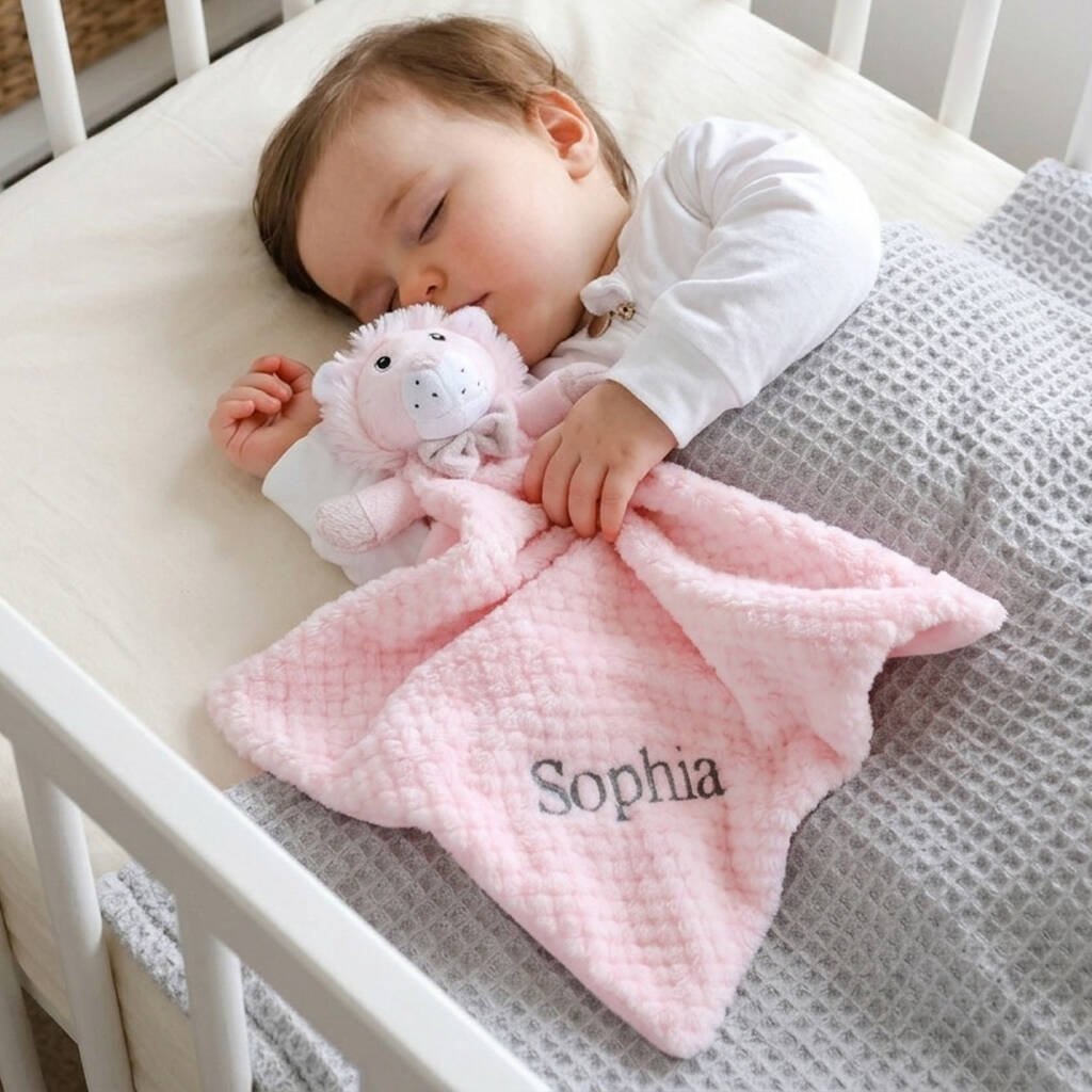 Personalised Pink Lion Baby Comforter