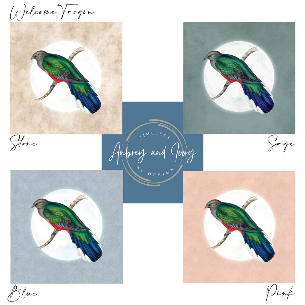 A timeless art print combining John Gould’s 19th-century Trogon illustration against a moon, blending vintage detail and Japandi minimalism. Available in four colours.