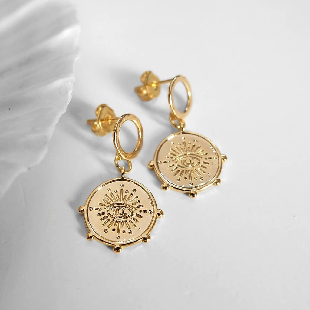 Gold Coin Evil Eye Earrings – Bohemian Lucky Charm Jewellery