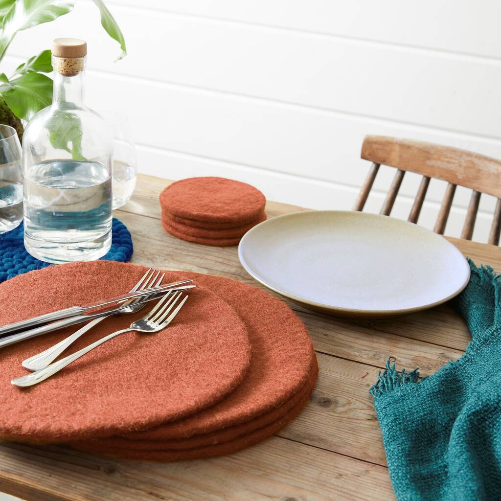 Fair Trade Handmade Eco Felt Table Mat Placemat 4pc Set