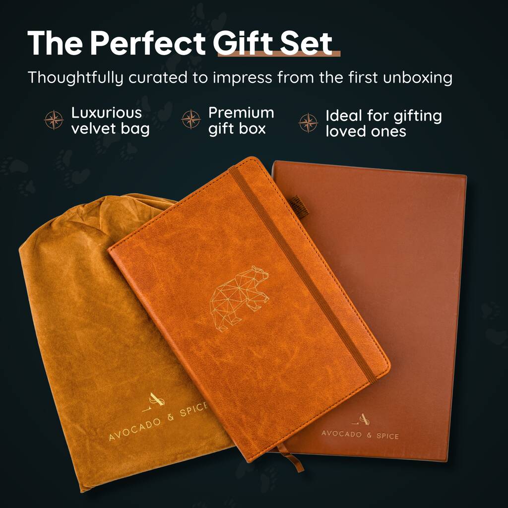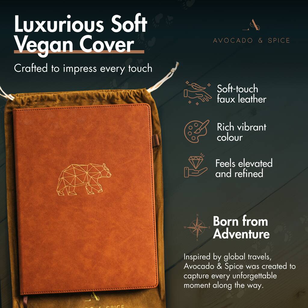The A4 Brown Bear Notebook from Avocado & Spice is designed for those who want more room to think, plan, and create. Bound in a buttery-soft PU leather cover and finished with a gold foil bear emblem, it combines elegance with practicality.