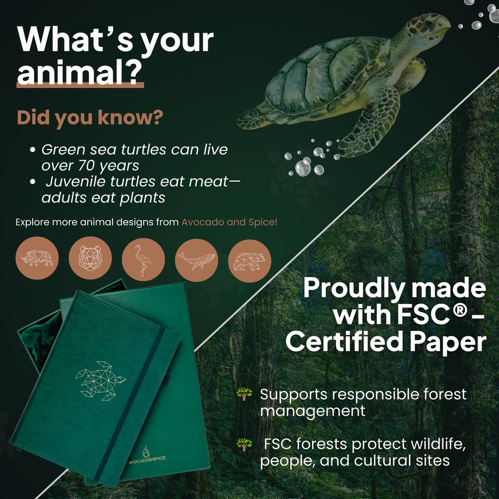 Stay organised and inspired with our premium A5 Green Turtle Notebook, designed for everyday notes, journaling, and creative ideas.